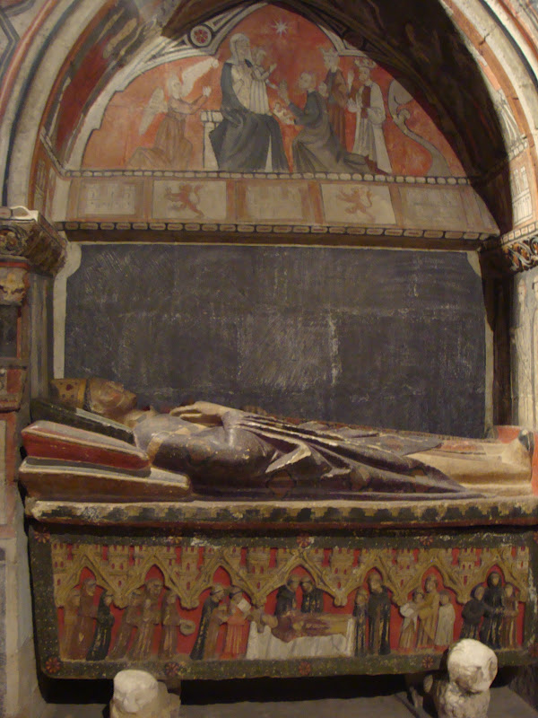 Na capela também se encontra o túmulo do bispo Rodrigo Díaz, lindamente policromado. Igualmente, em cima do mesmo se pode ver a Adoraçáo dos reis Magos. Na parte inferior temos alguns frades e santos franciscanos, pois o prelado pertencia a esta ordem. Tudo isto é contado por uma voz em off com direito a efeitos sonoros. Perfeito!
