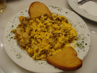 Aqui na Espanha até ovo mexido é prato de restaurante. Sim ! O prosaico ovo que é sinônimo de pobreza ou preguiça em terras brasilis. Afinal, atire a primeira pedra quem nunca teve que comer arroz com ovo puro porque não tinha carne. Mas que tal chegar em restaurante e pedir ovos mexidos com shitake? Ou que tal uma "frigideirada" de ovos com pimentão verde e morcilha? Parece esquisito, né? Mas é delicioso !