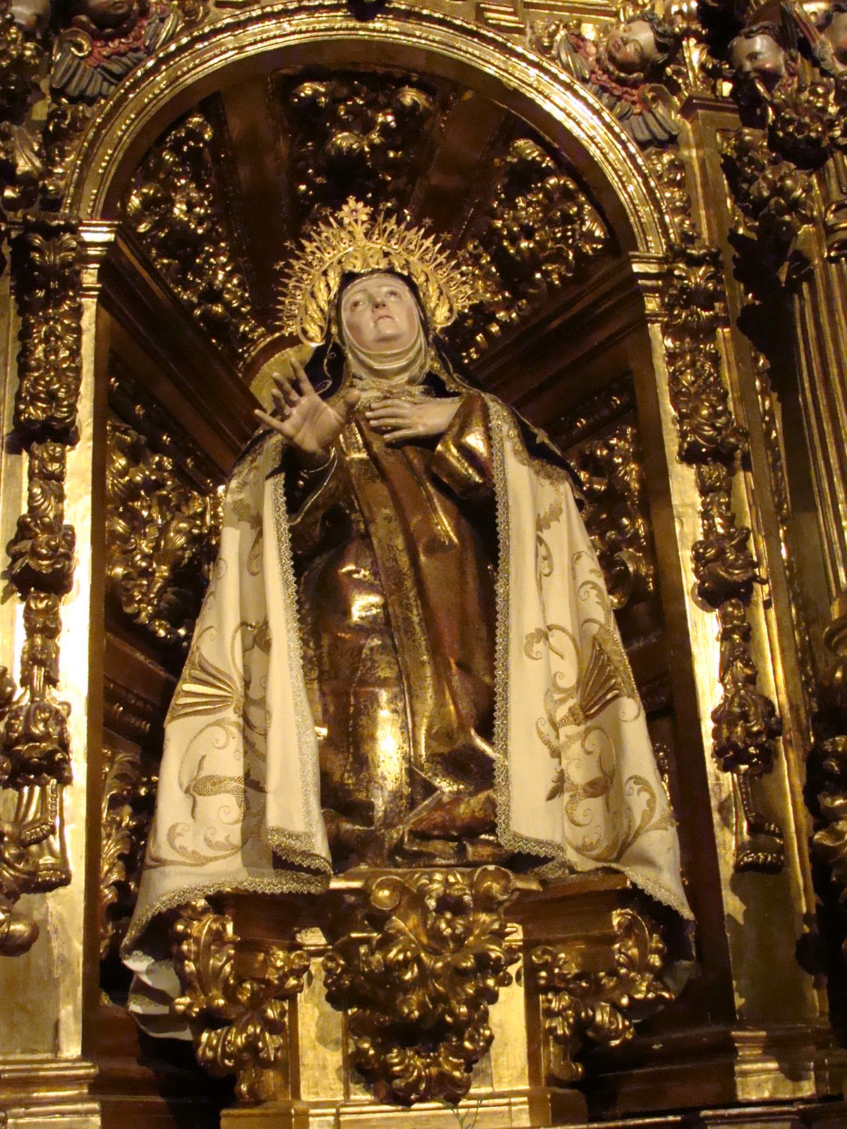 Como não poderia deixar de ser, Ávila presta homenagens à filha ilustre. Há praças, igrejas, estátuas,museu e claro, o carmelo onde ela passou parte da sua vida. Infelizmente, não deu tempo de visitá-lo. A igreja está muito bem conservada e é linda. Nos altares laterais, os vitrais contam a vida da santa. Sempre é bom lembrar que ela foi a primeira mulher a ser declarada doutora da Igreja.
