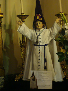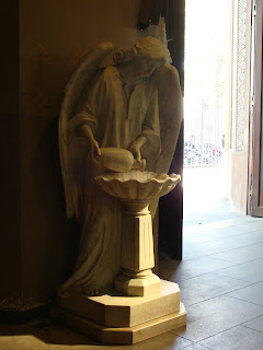 Casualmente, batendo perna na Gran Vía, esbarramos com um oratório dos Cavaleros Reales. Igreja bem tradicional e estavam bem na hora da comunhão. Detalhe: as pessoas comungavam ajoelhadas. Saímos rapidinho, claro. Porém, descobri uma curiosa imagem de N.S. do Carmo com um anjo beijando-lhe os pés. Fofo!!
