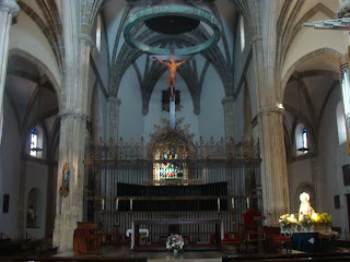 A catedral é em estilo gótico, mas muito simples. A cripta onde estão guardados os restos mortais dos santos não tem muitos ornamentos. Somente a urna onde os restos mortais dos santos impressiona.Deixei lá uma oferenda e rezei por todos nós como tinha prometido fazer antes da viagem. Os altares laterais alternam o barroco e o renascimento e vários estão desativados. Há as onipresentes imagens de santos vestidas “de verdade” ou com cabelos “de verdade”. Parece que estamos sempre entrando nas igrejas mineiras!!