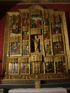 O retábulo da capela nos impressionou por sua riqueza de pinturas e coloridos. Ainda tivemos a grata surpresa de nos deparar com uma linda exposição de armaduras medievais, armamentos, miniaturas e instrumentos da escola de química que funcionava ali.Depois de uma passeio tão rico, agora Segóvia mora em nosso coração!