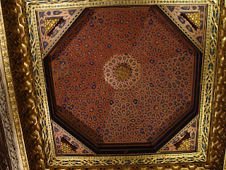 O teto é ricamente decorado com palavras em árabe e desenhos geométricos com cores fortes, bem ao gosto dessa gente que viveu por aqui durante 800 anos.
