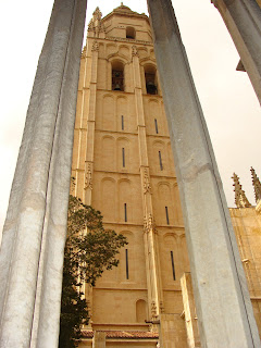 Depois de admirar o aqueduto partimos para conhecer a catedral, dedicada a assunção de Maria e a São Frutos. A igreja data do séc. XVI, na transição do gótico para o renascimento e levou quase 200 anos para ser concluída. Assim, se encontra um pouco de vários estilos. As imagens dos santos são lindíssimas e o coro também. Ah! As ruas de Segóvia já estão enfeitadas para o Natal e o dia de Reis.