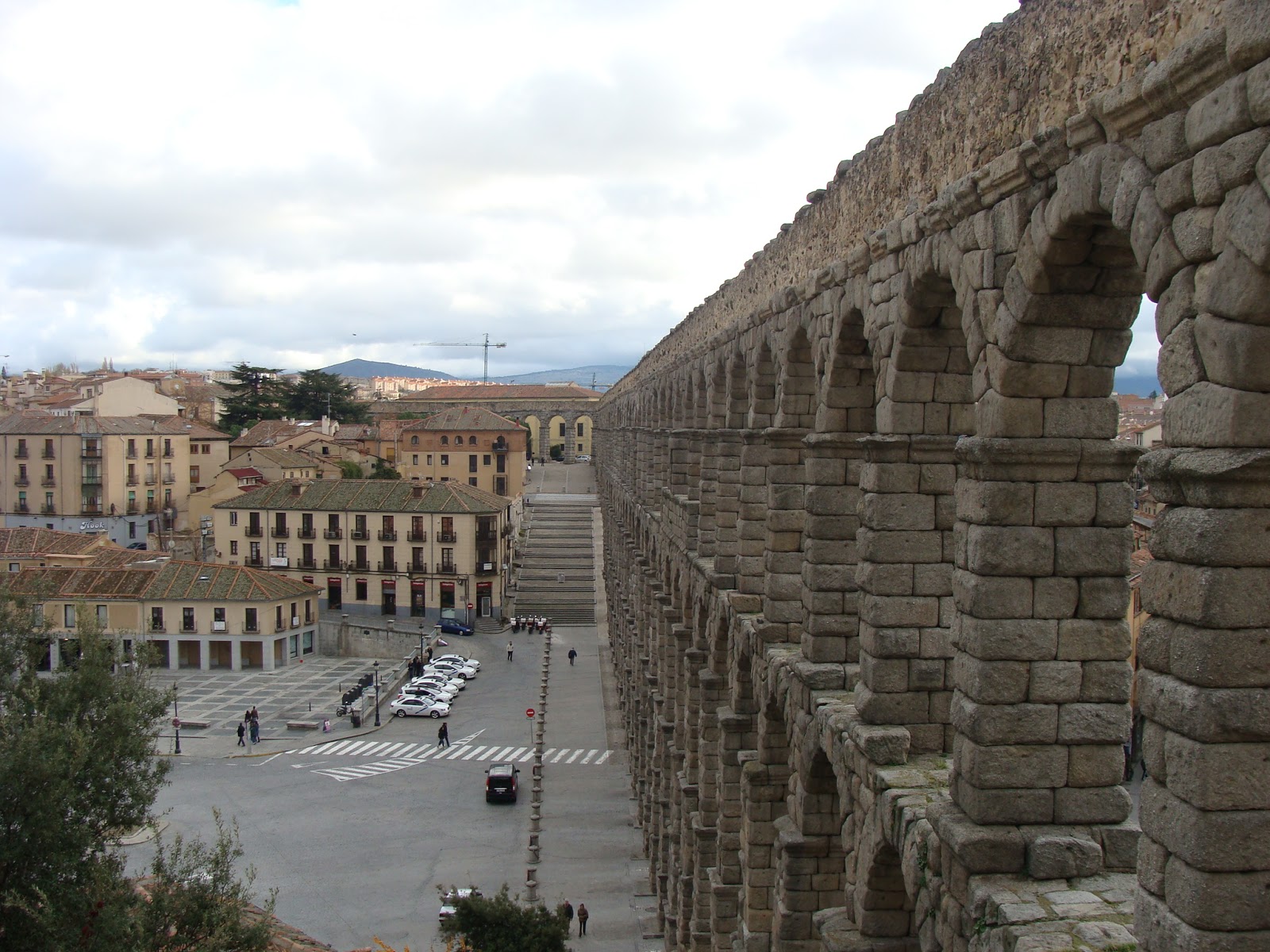 O símbolo da cidade de Segóvia e sua principal atração turística é o aqueduto. Construído pelos romanos, em pedras superpostas e sem cimento! Como assim? Tem uma argamassa básica, mas a grande maioria das pedras está apenas equilibrada uma nas outras. Uma ode aos engenheiros civis.