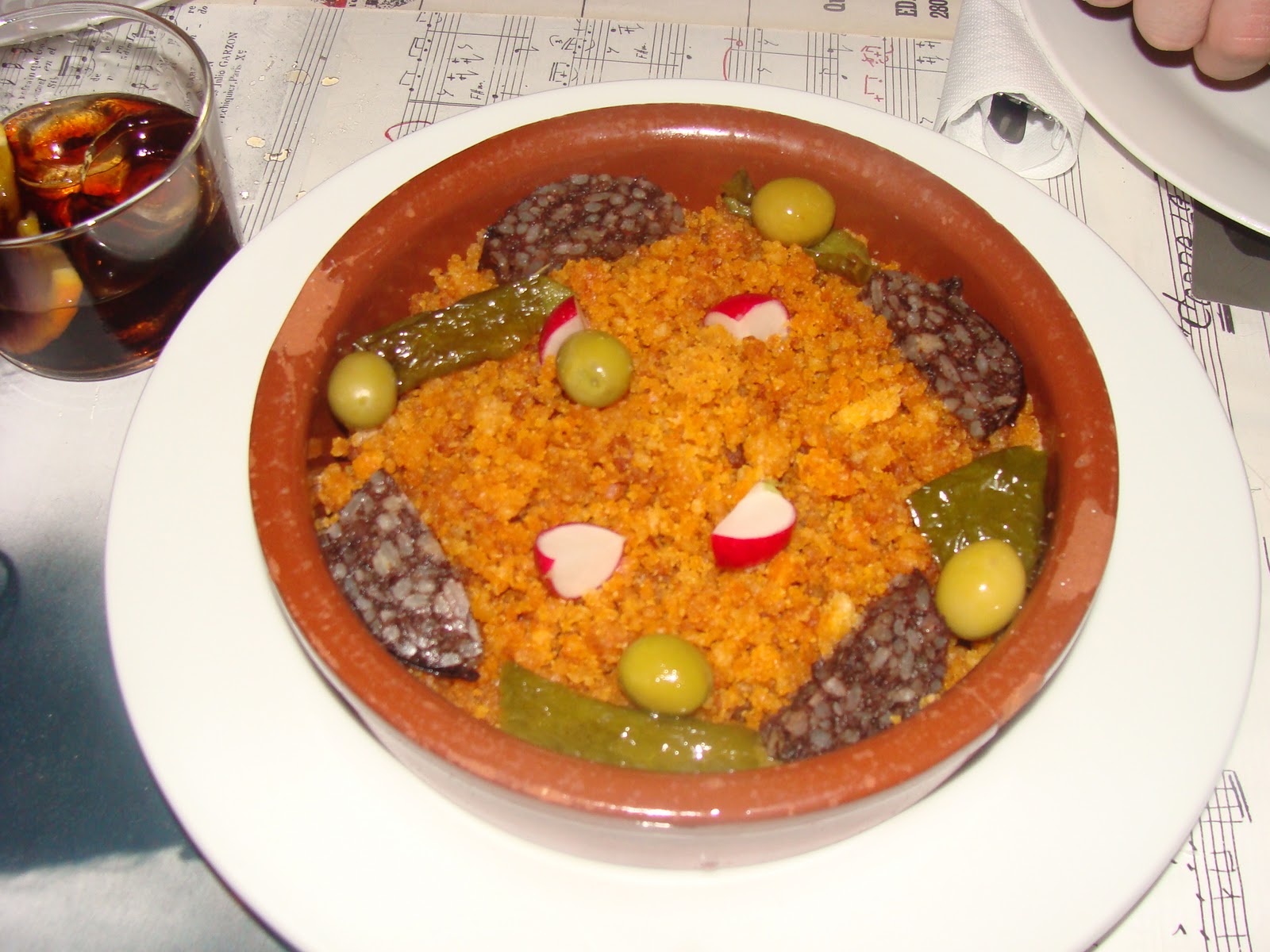 Mais uma descoberta sensacional da maravilhosa comida espanhola: as "migas". Prato de gente do campo, que precisava comer muito e pesado para aguentar a lida. Nada mais são que pão dormido esfarelado (ou cortado), com chorizo, pimentão, e tudo mais que se pode colocar nesta base. Claro que agora é chique e se come em pequenas porções, mas o costume era digerí-los no café-da-manhã. Como todo prato há variações regionais e locais, óbvio.
