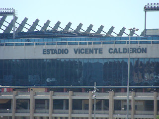Não sabia, mas uma parte da festa de San Isidro acontece perto do estádio do Atlético de Madri, Vicente Calderón. Infelizmente não pude entrar e nem encontrei com o Forlán, mas tirei foto e fiquei muito feliz!
