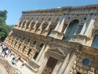 Continuando nosso passeio granadino. Dentro do complexo chamado Alhambra há um palácio renascentista que destoa dos demais. Depois da Reconquista, Carlos V, resolveu construir ali, um palácio que refletiria a sua glória.