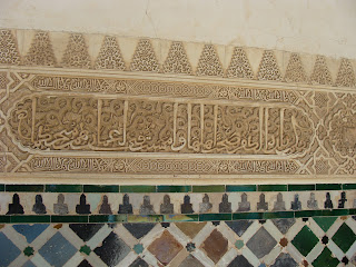 A Alhambra que conhecia, como a das foto acima, é o palácio dos Nazaries. Esta foi a dinastia que governo ali mais tempo. A construção é um reflexo da arte desenvolvida pelos muçulmanos nessas terras. Estão lá as inúmeras fontes, os louvores a Deus em árabe e os azulejos desenhados de figuras goemétricas.