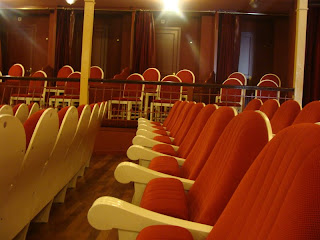 O teatro é lindo e confortável. No foyer, fotos dos atores e atrizes que passaram pelo palco. A cor predominante é o vermelho. Há balcão e deu pra perceber que a acústica é ótima !Será que tem piano lá?