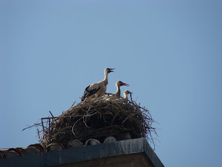 Em Alcalá, mais tradicionais que Cervantes, Dom Quixote e Sancho Panza, só mesmo as cegonhas. Agora, os filhotes começam a aparecer nos ninhos e em breve devem receber suas primeiras lições de voo.
