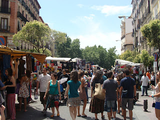Madrileando por aí fomos à feira de La Latina conhecida como Rastrilho. O local, antigamente, era o matadeiro de Madri; os açougueiros abatiam o animal e iam arrastando o bicho rua abaixo. O sangue deixava um rastro pelas ruas e aí o povo começou a chamar o local de rastro, rastrilho.