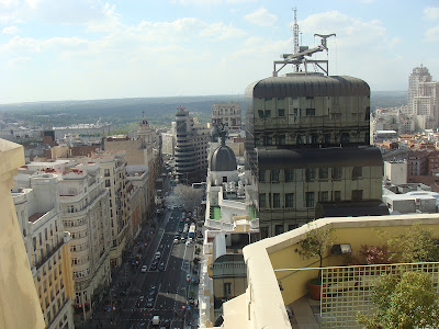 Agora, algumas fotos panorâmicas de Madri tiradas num edifício da Gran Vía. A torre Colón: