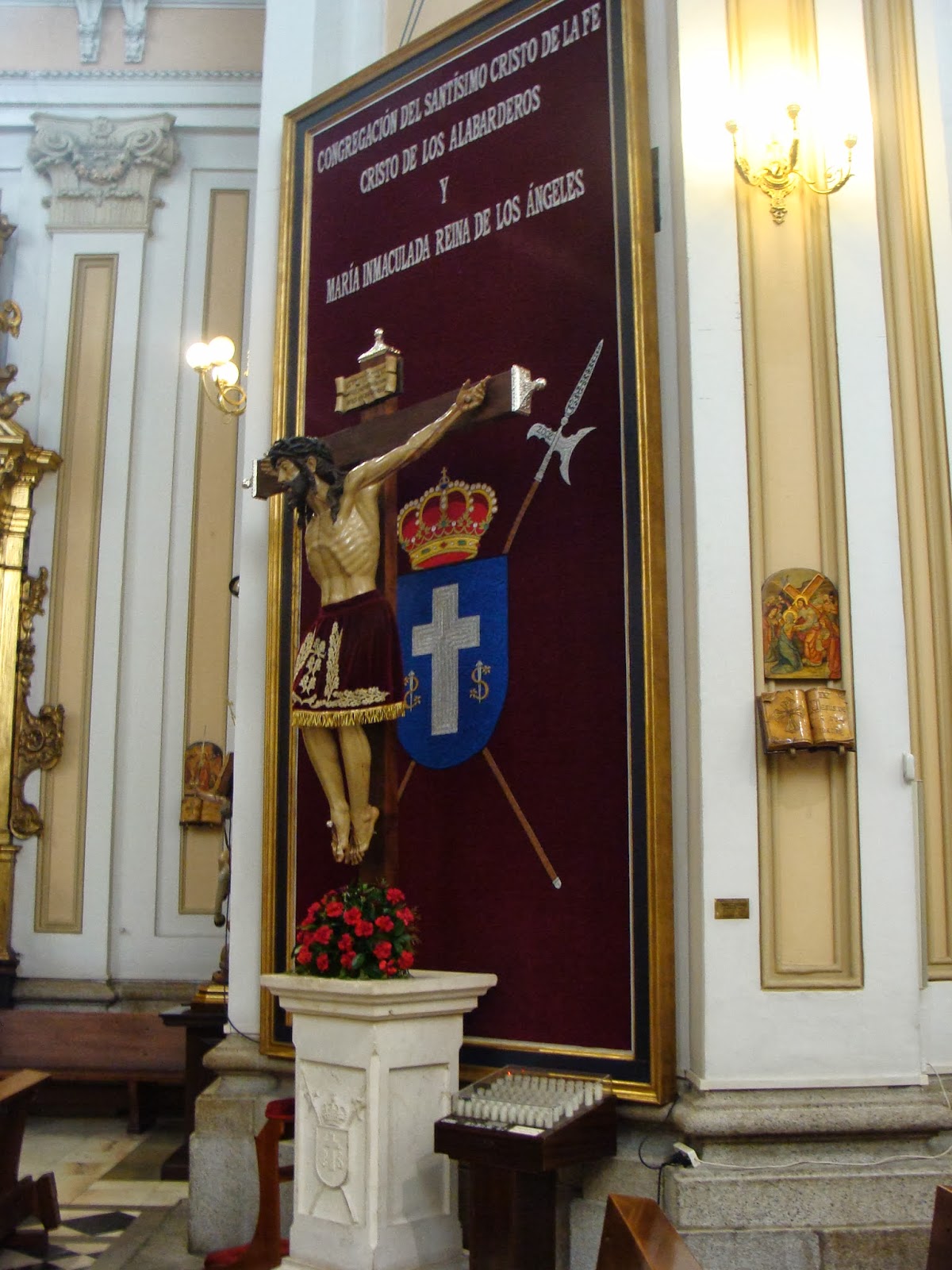 A igreja também é sede da Confraria do Cristo da Fé, Cristo dos Alabarderos e Maria Imaculada Santíssima Rainha dos Anjos e esta sai em procissão pelas ruas de Madri na Sexta-Feira Santa. Ah! Ficaram curiosos? O que é um alabardero? È o soldado que faz parte da guarda que protege o Rei e usava a alabarda, uma lança pontiaguda, que aparece no pintada, aí na imagem à esquerda. Até hoje é possível vê-los montando guarda no Palácio Real com uniformes do século 19. Viram como vale a pena visitar esta igreja?