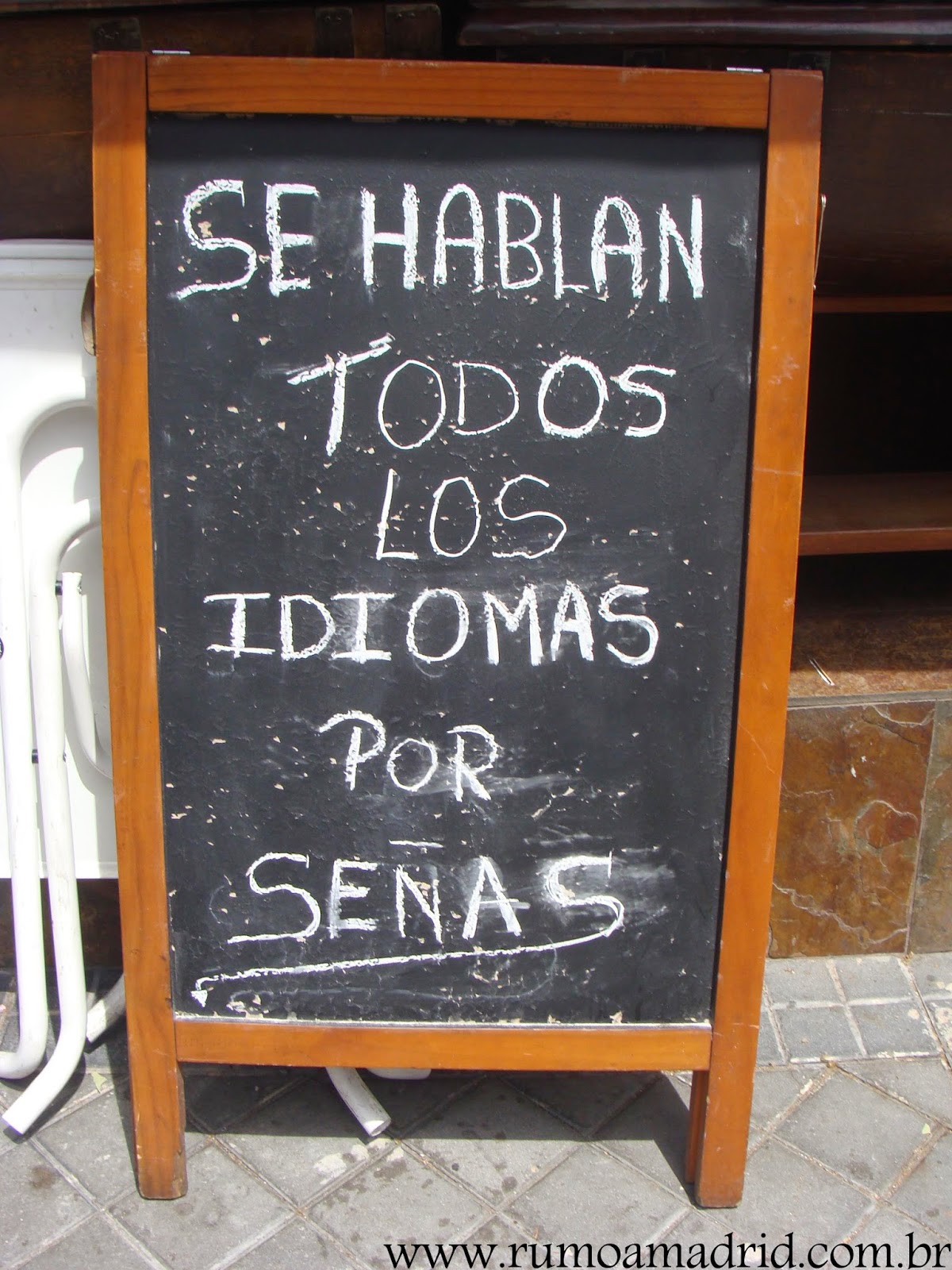 Caminhando pela cidade só agora me dou conta que muitos restaurantes, para atrair a clientela, escrevem algo espirituoso nas placas que anunciam o menu ou a especialidade da casa.Pode ser um ditado, uma piada ou até mesmo uma citação literária. Estou fazendo uma coleção que público periodicamente no Facebook do Rumo a Madrid. Hoje resolvi juntá-las todas aqui:
