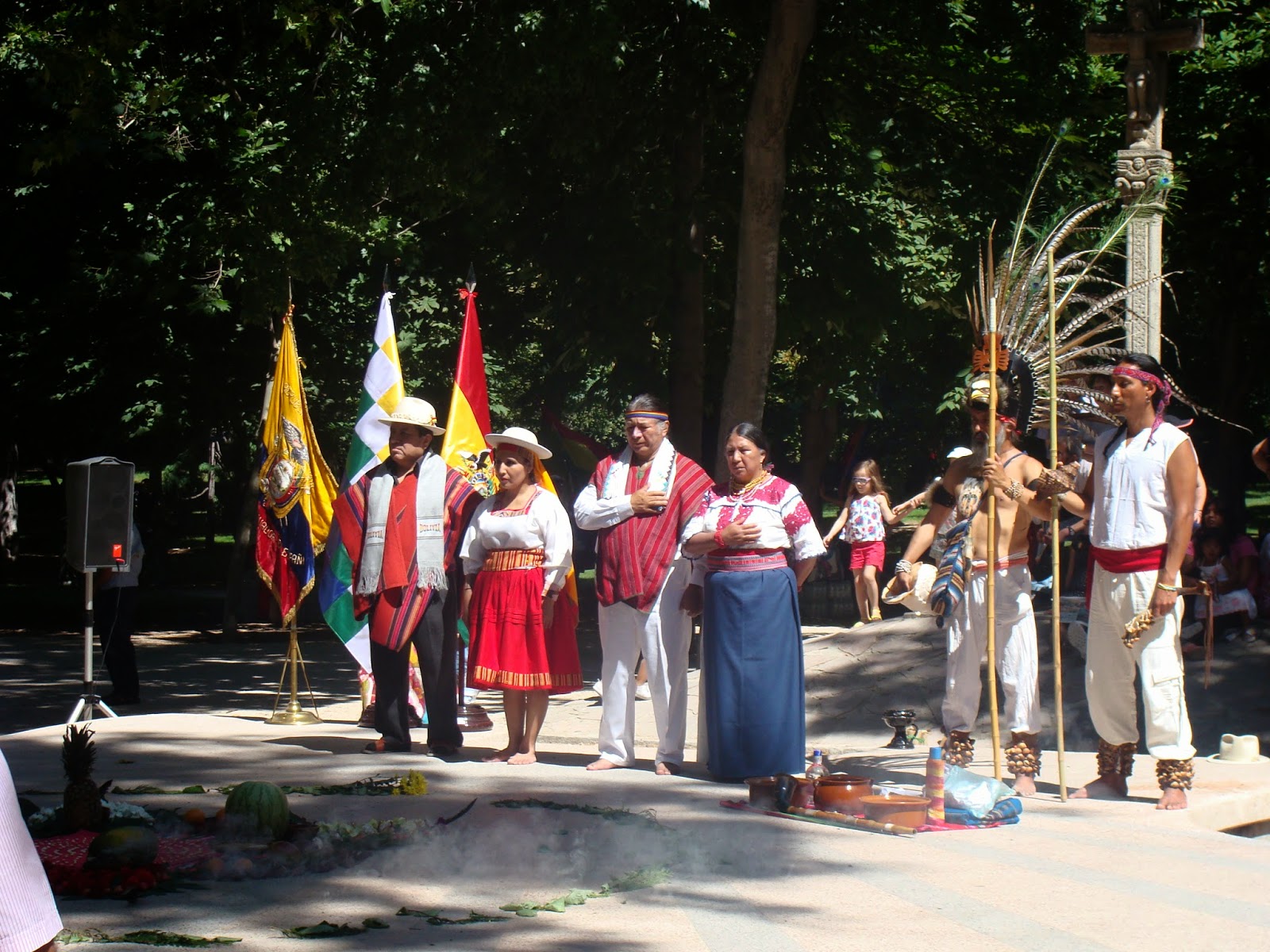 Estávamos indo para o concerto da banda sinfônica que acontece domingo no parque do Retiro quando nos deparamos com várias pessoas oriundas da Colômbia, Bolívia, Equador e Peru, vestidos com suas roupas típicas. Paramos e descobrimos que ali ocorreria a comemoração do Ano Novo Andino ou Willkakuti - regresso do sol, o Solstício de Inverno; celebrada no dia anterior. Estavam lá sacerdotes, músicos, dançarinos e os curiosos de plantão que não perdem uma festa ou que desejam aprender mais.